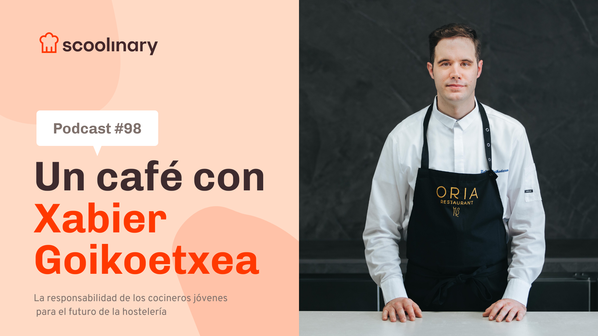 En este episodio del Podcast de Scoolinary, nos tomamos un café con un apasionado del buen café, que lo toma solo y sin azúcar. Hablamos hoy con Xabier Goikoetxea, ​​chef ejecutivo en Oria, 1 Estrella Michelin y 1 Sol Repsol en Barcelona, y también profesor del curso online en Scoolinary Cocina Vasca: Tradición e Innovación, un curso online donde podrás aprender las recetas más representativas de la cocina vasca y su cultura culinaria de fama mundial.
